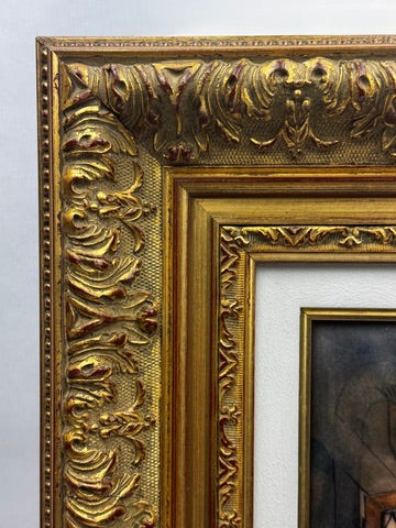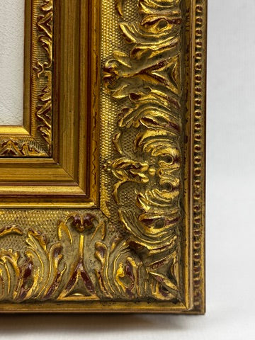 Encadrement en bois doré à décor de feuilles d’acanthe, d’époque, présentant quelques légères usures cohérentes avec l’âge.