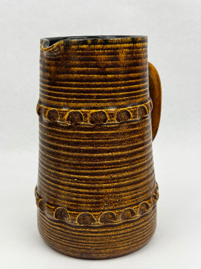 Grand pichet Accolay en grès émaillé brun, décor géométrique incisé – vers 1960