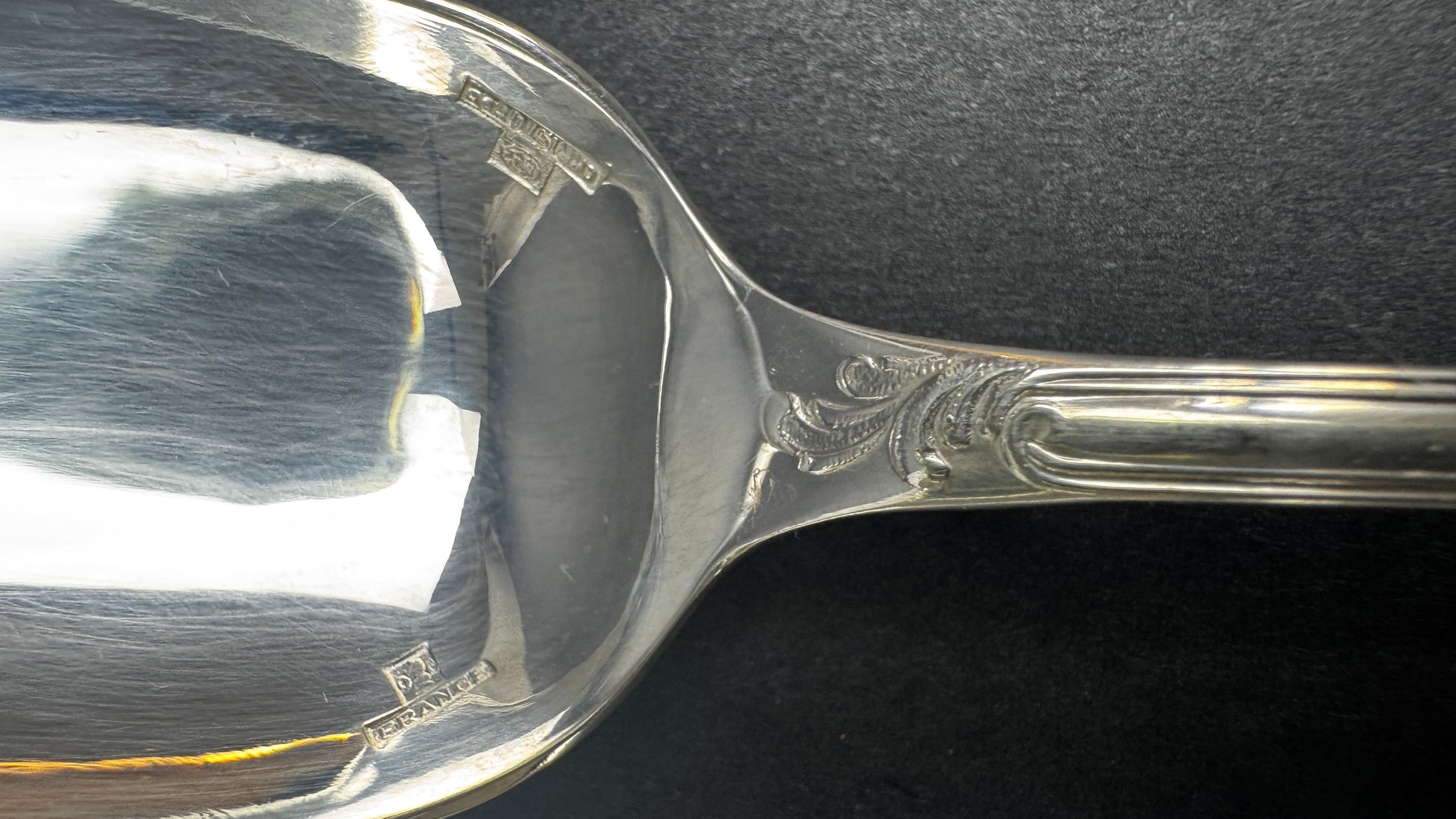 Ces cuillères présentent le décor rocaille caractéristique du modèle Marly, à cartouches et enroulements feuillagés, finement ciselé.