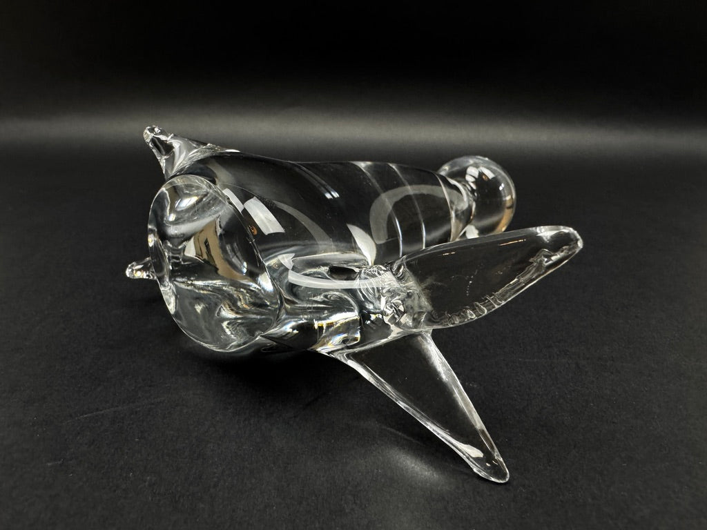 Réalisée à la main selon la technique traditionnelle du verre soufflé, cette sculpture exprime toute la fluidité du mouvement et la transparence cristalline caractéristiques des ateliers vénitiens des années 1960-1970.