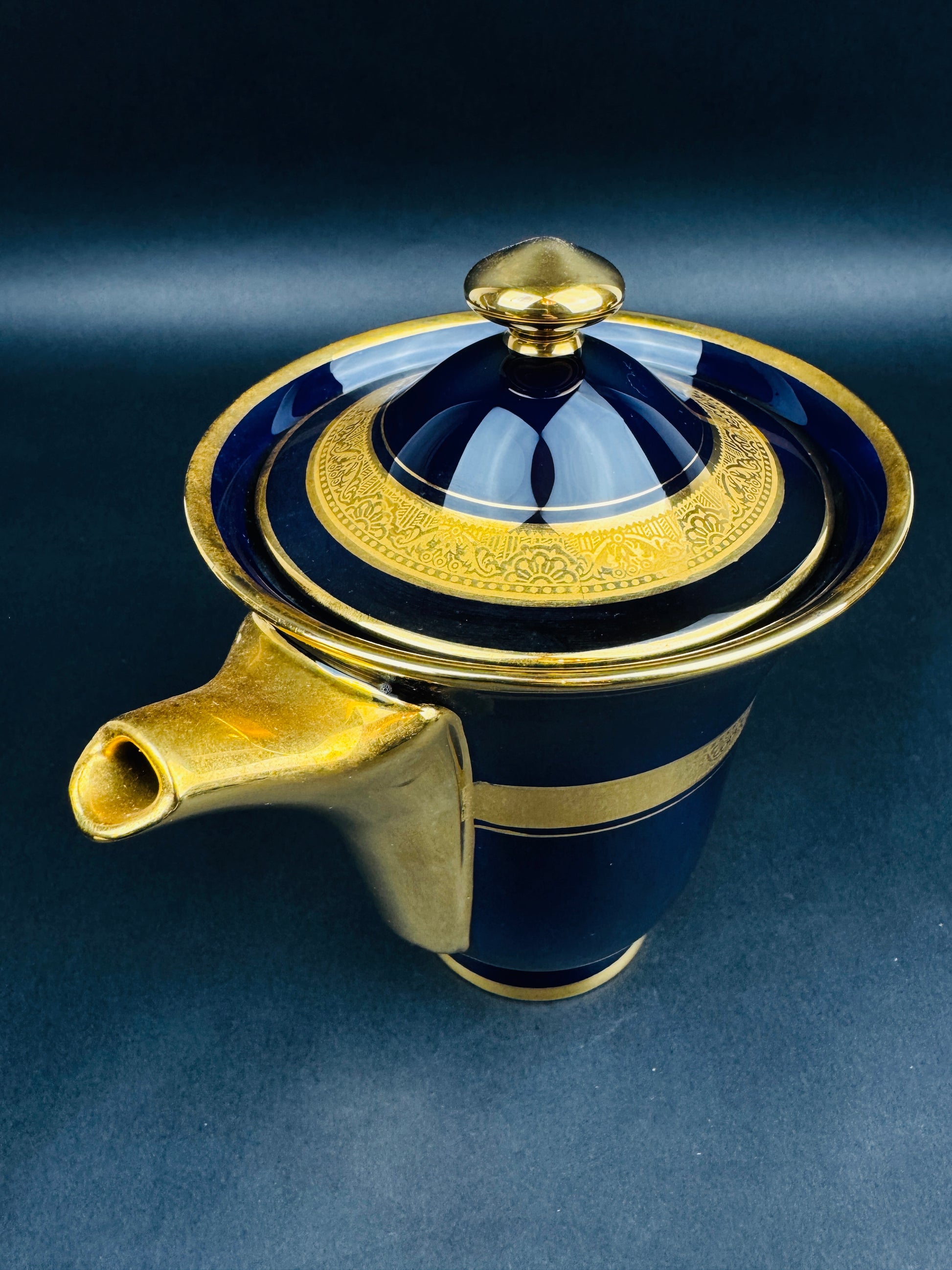 Raffiné modèle à décor bleu cobalt et or, typique des productions luxueuses de la maison Legle. Ensemble comprenant :